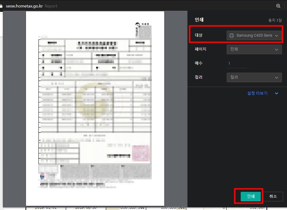 5. 인쇄버튼 클릭