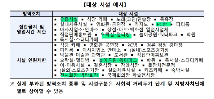 집합금지 및 영업시간 제한을 받은 곳과 시설 인원 제한 받은 곳이 해당됩니다. 실내체육관, 영화관, 마트, 상점, 백화점 입점업체, 박물관, 도서관, 돌잔치전문점, 장례식장 등 아래의 대상 시설을 참고해 주세요.