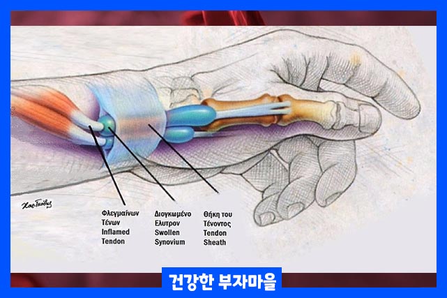 건초염은 건초에 염증이 생기는 증상입니다. 근육과 뼈를 연결하는 힘줄에 염증이 생기면 손가락, 손목 등에 통증이 발생합니다.