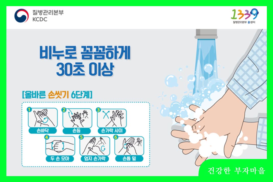 2. 자주 흐르는 물에 비누 사용해서 손 씻기