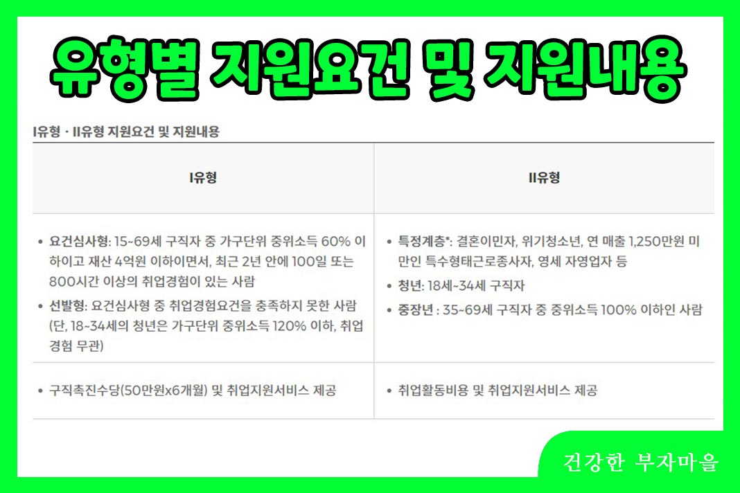 국민취업지원제도 지원을 희망하는 사람의 소득, 재산을 확인해서 I유형 또는 II유형을 구분해서 지원합니다.